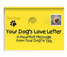 If you're a dog lover like me, I suggest that you purchase Your Dog's Love Letter, an adorable novelty book that you can give yourself or give as a gift to any dog lover you know. I know you'll love it! and